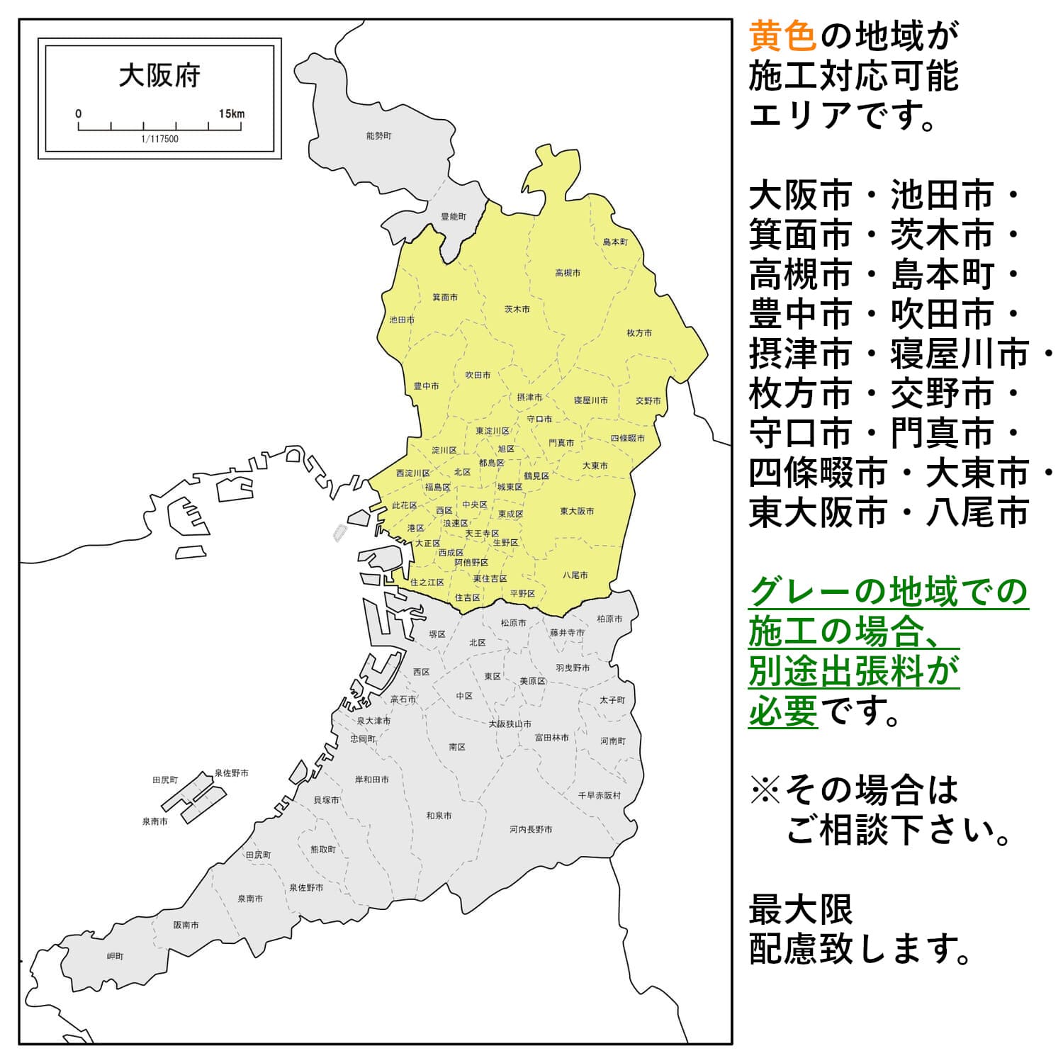 • 対応可能地域は、大阪府神奈川県東京都埼玉県千葉県の一部です。